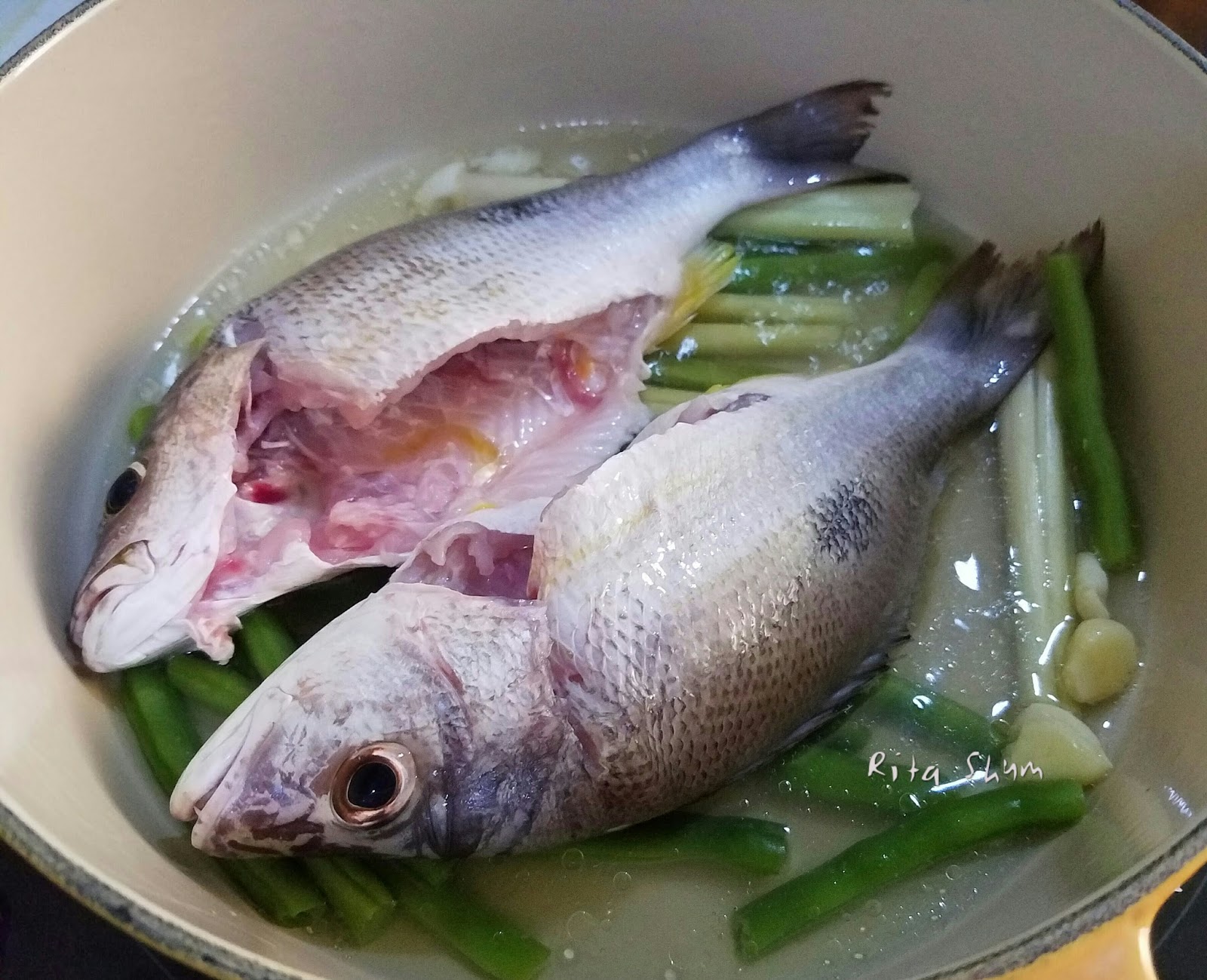 簡易家常便飯: 新鮮海魚本身肉甜,隨意蒸煮便可。個人特別喜歡以煮浸方式。魚短時間烹調,肉嫩。除了常用油鹽水外。加入泰風味也不錯。